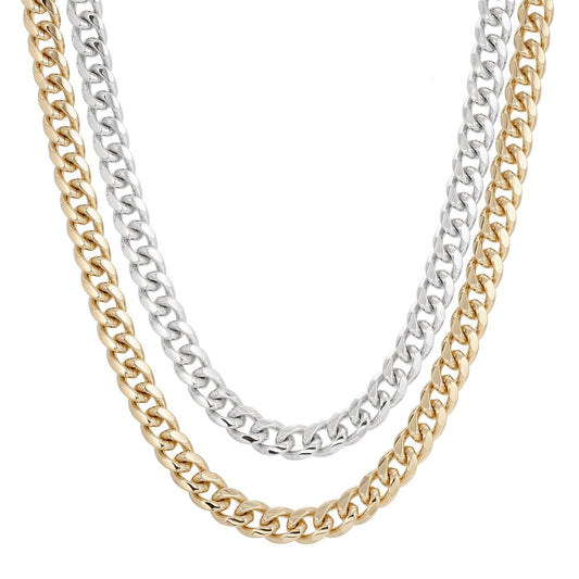 TWO-TONED DOUBLE CURB CHAIN NECKLACE by eklexic