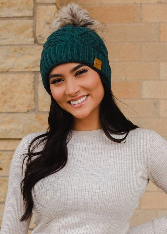 Deep Teal Cable Knit Pom Hat
