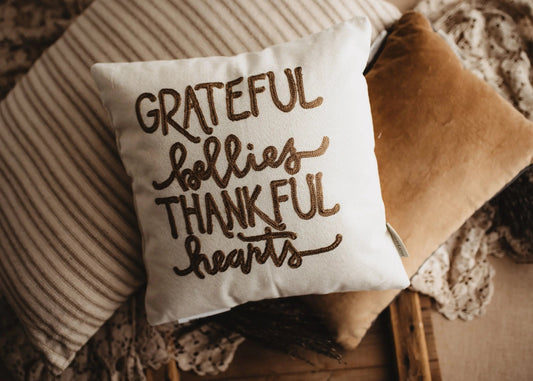 Grateful Bellies Thankful Hearts Throw Pillow