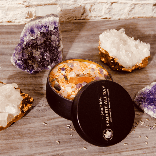 Namaste Crystal Candle β Scented Meditation Candle with Crystals