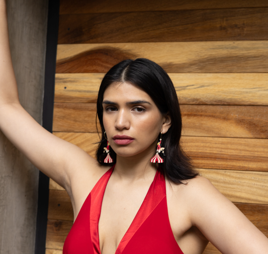 Trapeze Artist Hoop Earrings in Red – Bold & Playful Statement Jewelry