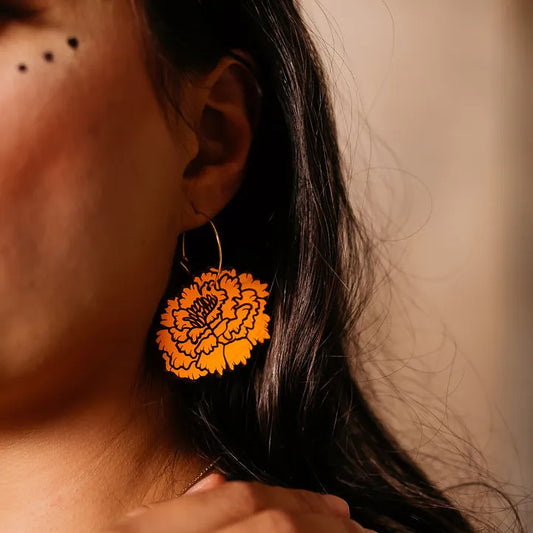 Marigold Hoop Earrings – Bright Floral Statement Jewelry