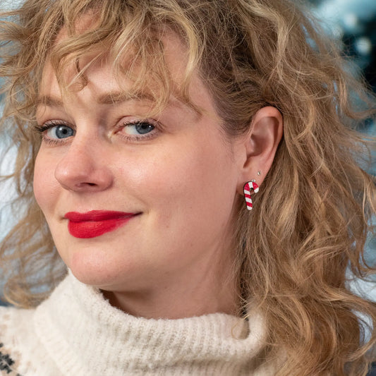 Sparkly Candy Cane Stud Earrings – Festive Holiday Jewelry