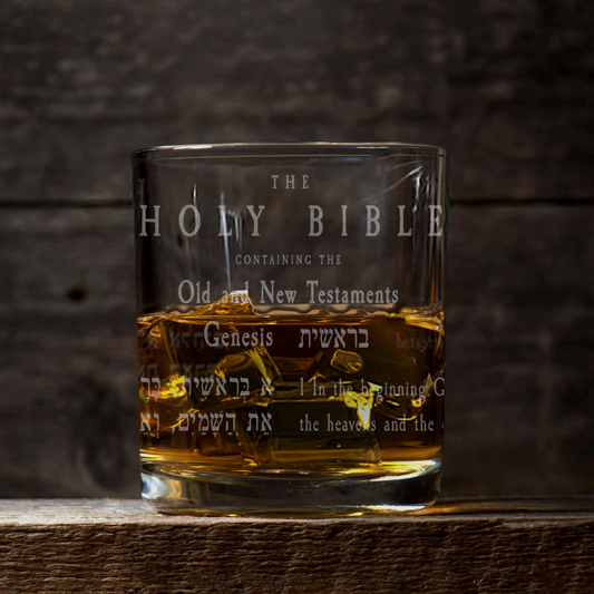 HOLY BIBLE Whiskey Glass by Lumengrave