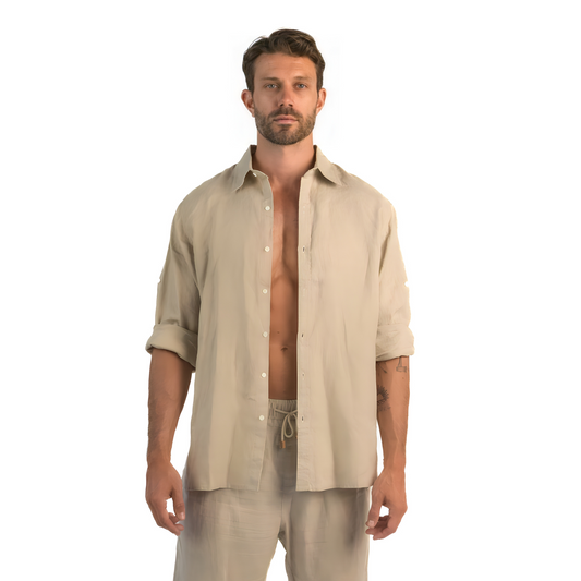 Beige Linen Shirt – Lightweight Casual Button-Up for Women