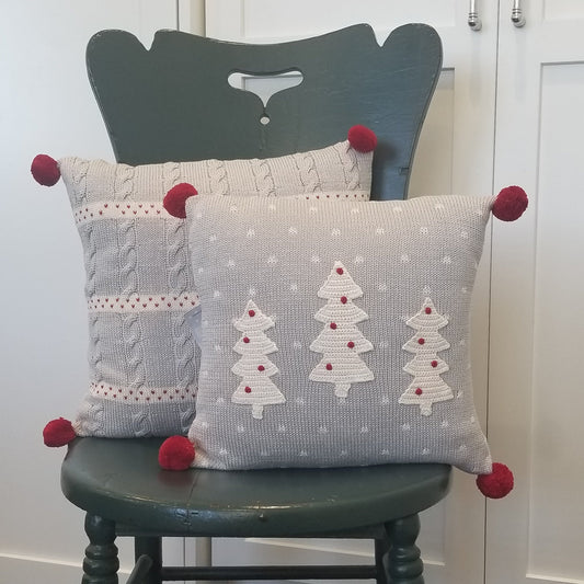 Grey Cable-Knit Decorative Pillow – 14" Cozy Knit Accent Cushion