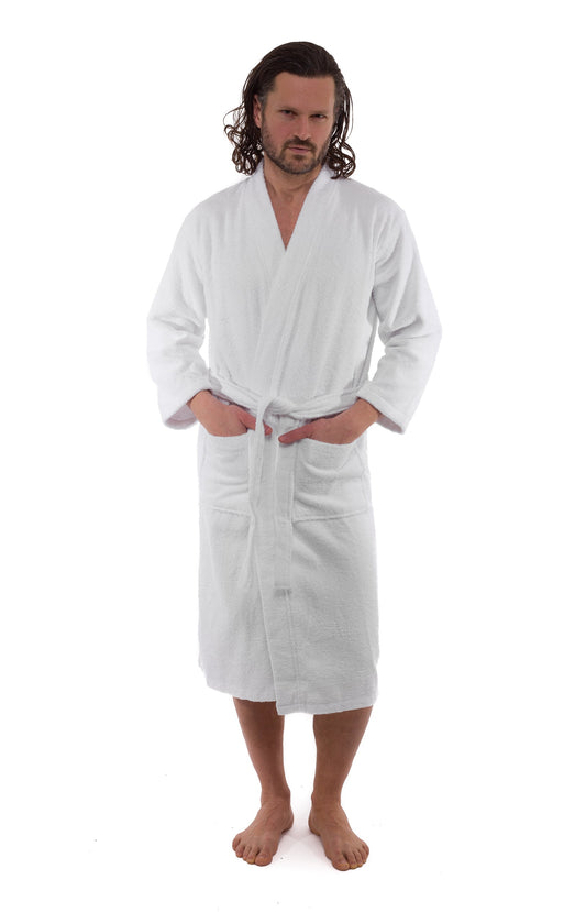 White Terry Cloth Turkish Cotton Shawl Collar Bathrobe – Unisex Italian Style