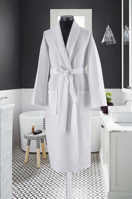 White Waffle Terry Turkish Cotton Bathrobe – Soft & Breathable