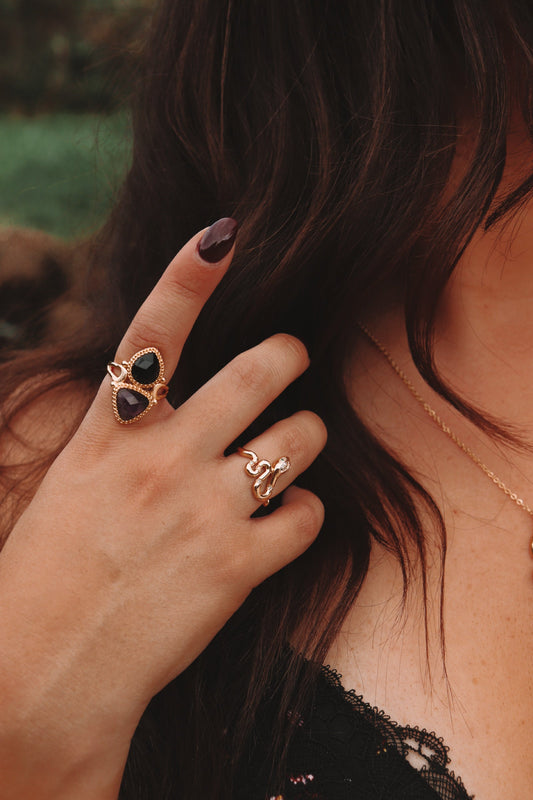 Amethyst and Onyx Statement Ring – Handmade Boho Crystal Jewelry