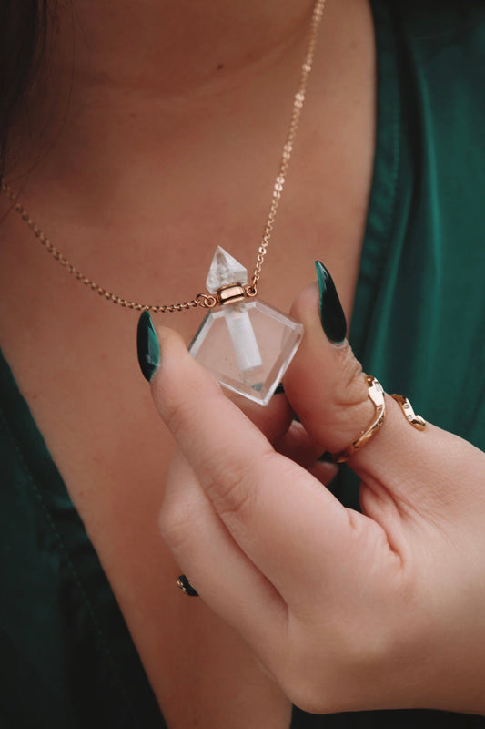Clear Quartz Potion Bottle Necklace – Mystical Crystal Pendant Jewelry