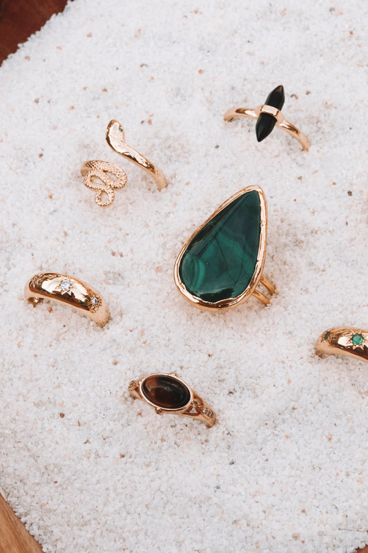Malachite Teardrop Ring – Elegant Green Stone Statement Jewelry