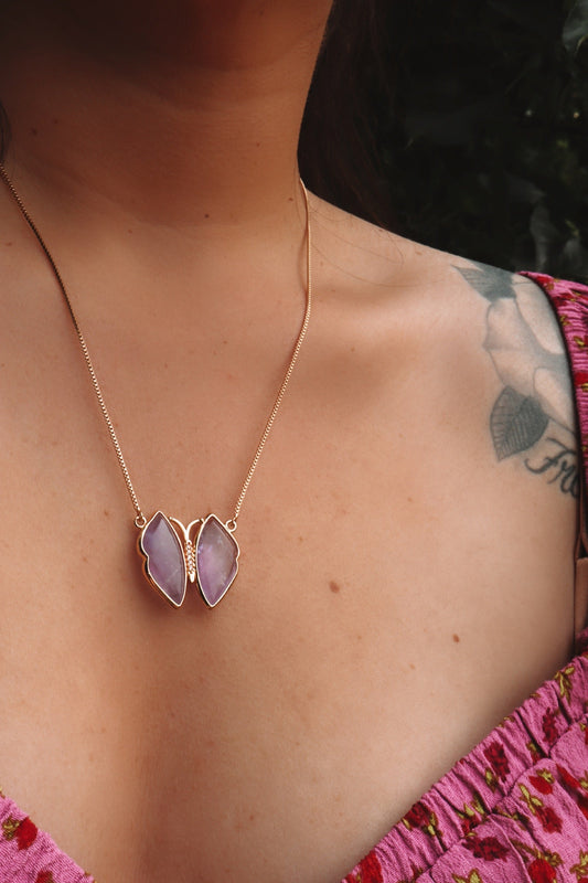 Gemstone Butterfly Necklace – Delicate Boho Butterfly Pendant Jewelry