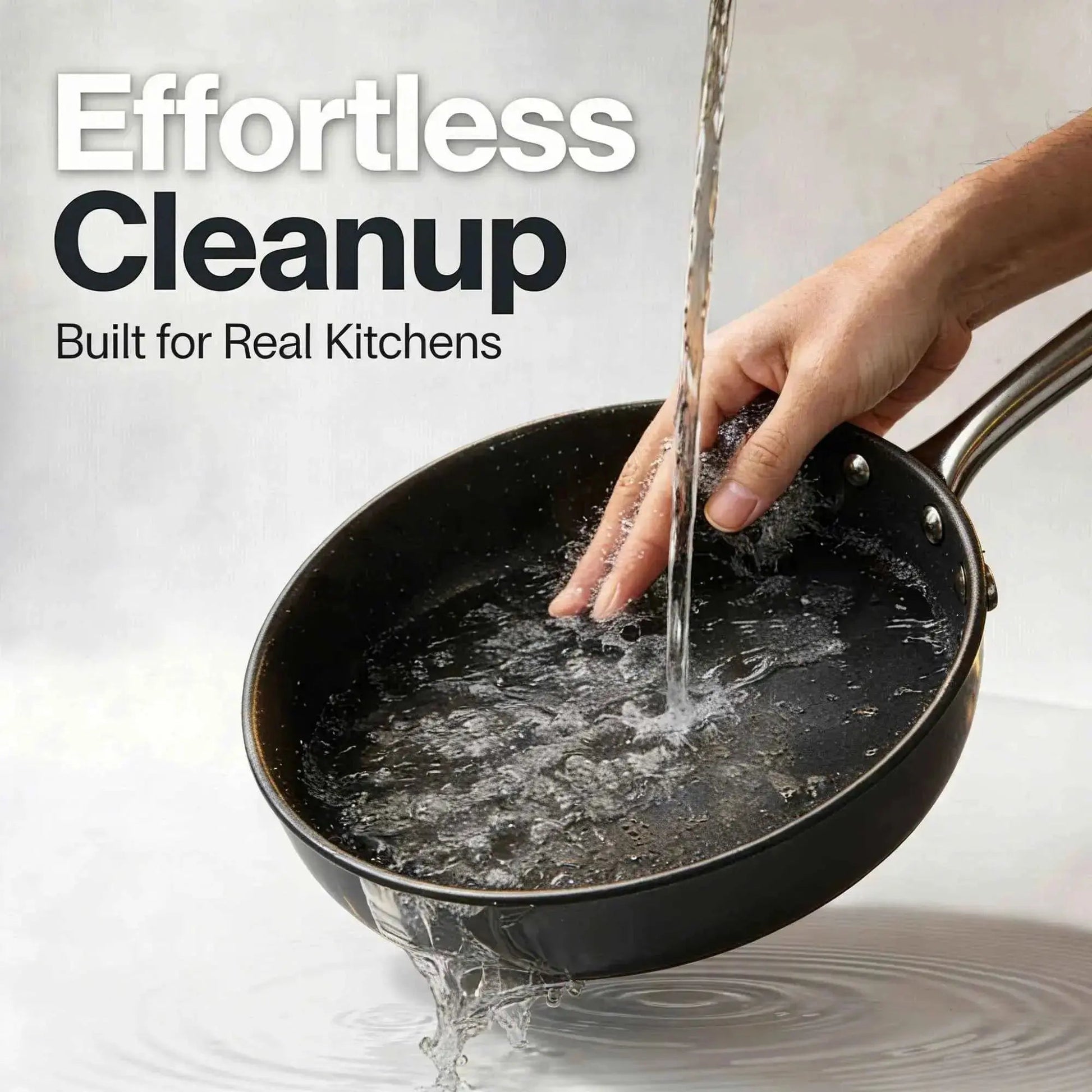 Gas, electric, ceramic, induction. Oven-safe to 400°F. One pan, every burner, every meal.