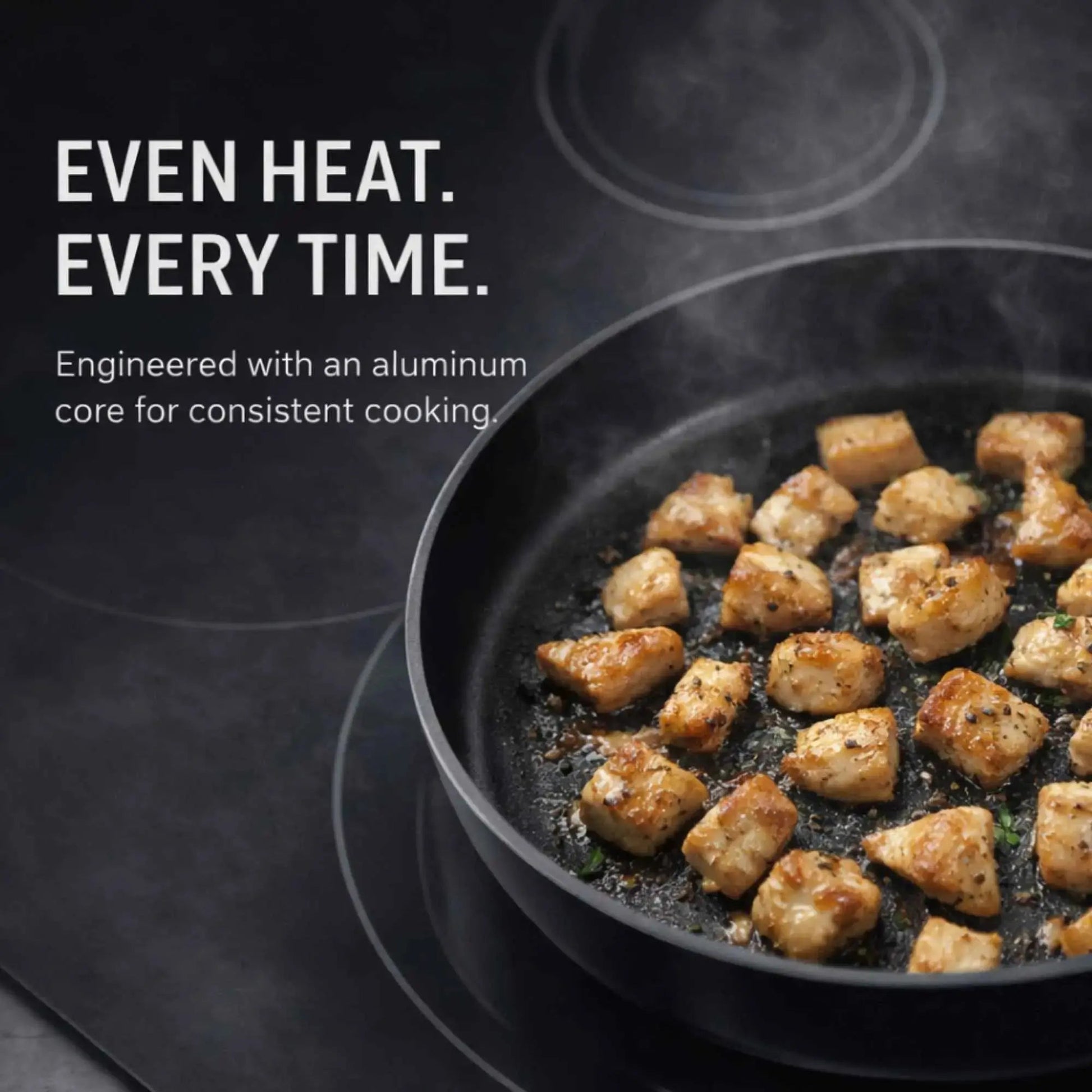 Eliminates hot spots. Your eggs cook evenly. Your sear is consistent. Every time.