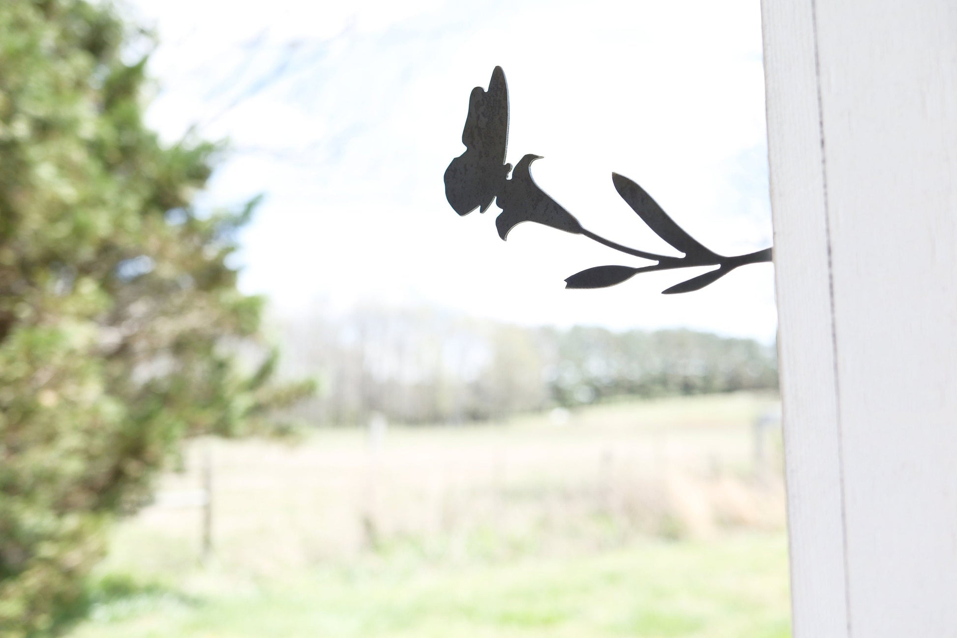 Cheerful decoration for your backyard or garden. Use screws (included) to attach this butterfly to your decking, a fence post or other fixture. Two screw holes are made into the bottom of the piece.