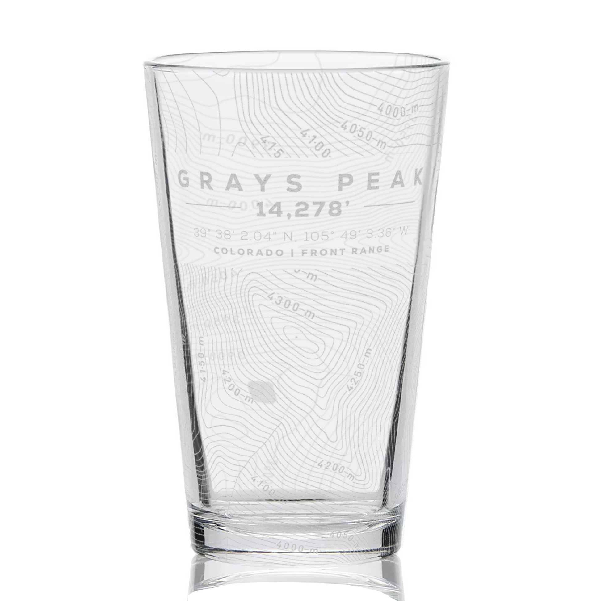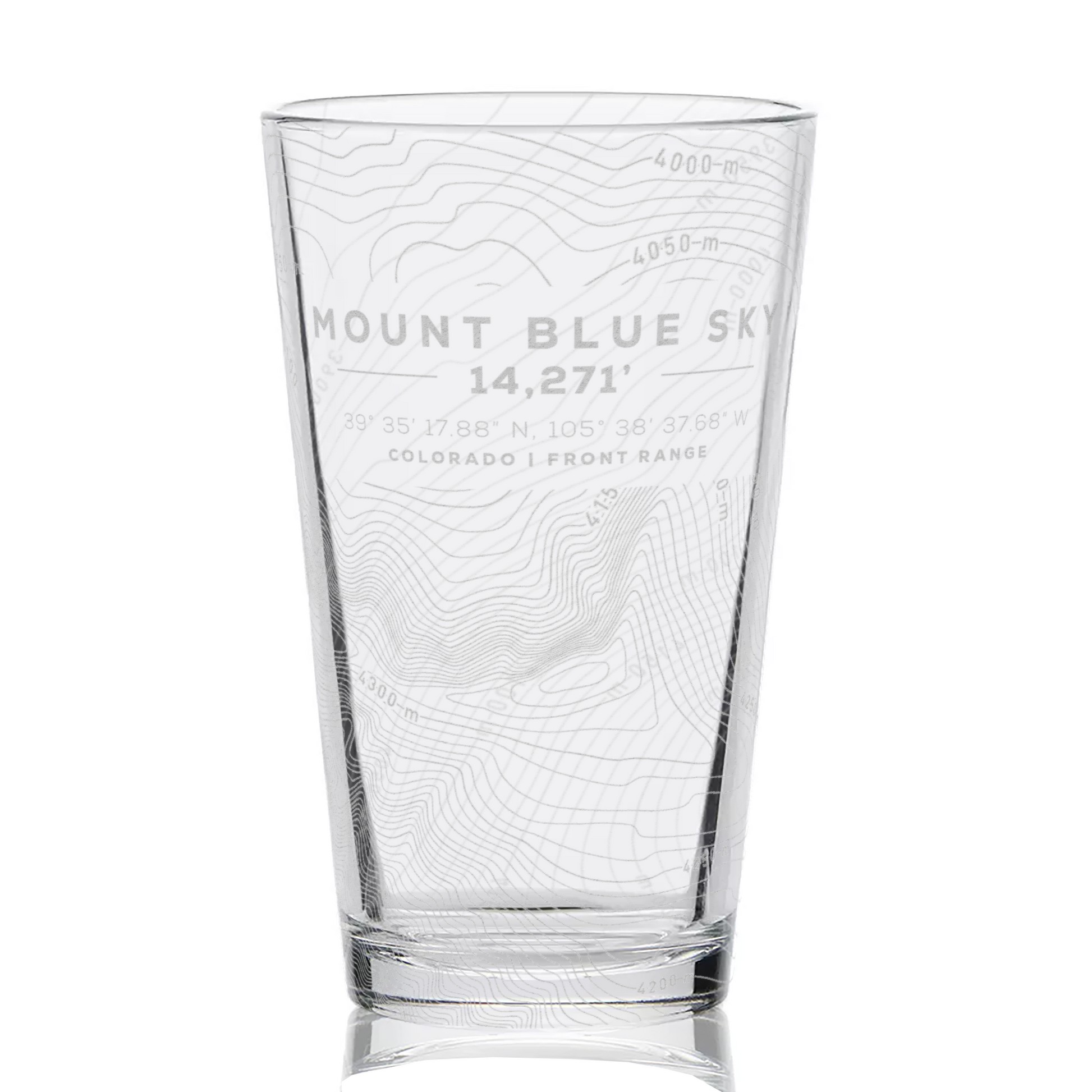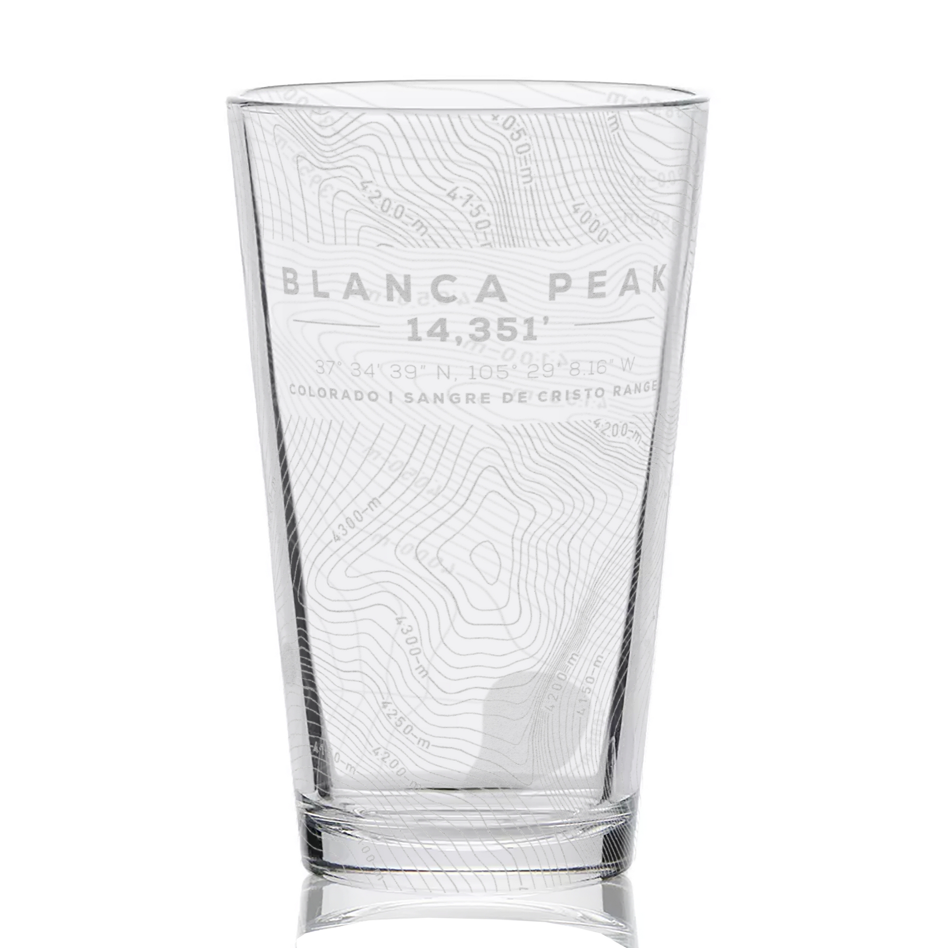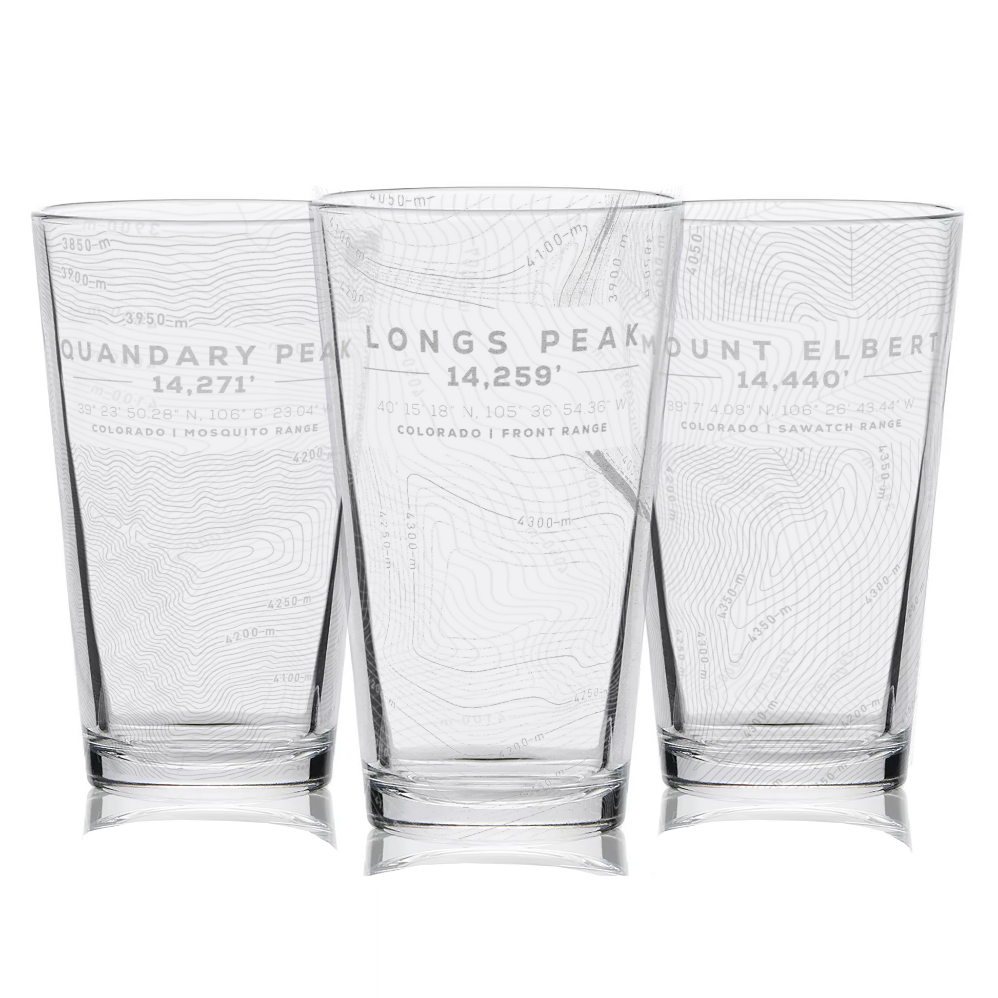 Introducing our Colorado 14ers Pint Glass Collection , celebrating the topographic majesty of the Rocky Mountains in all their towering glory. Each glass in this meticulously crafted set pays homage to one of Colorado's iconic 14,000-foot peaks.