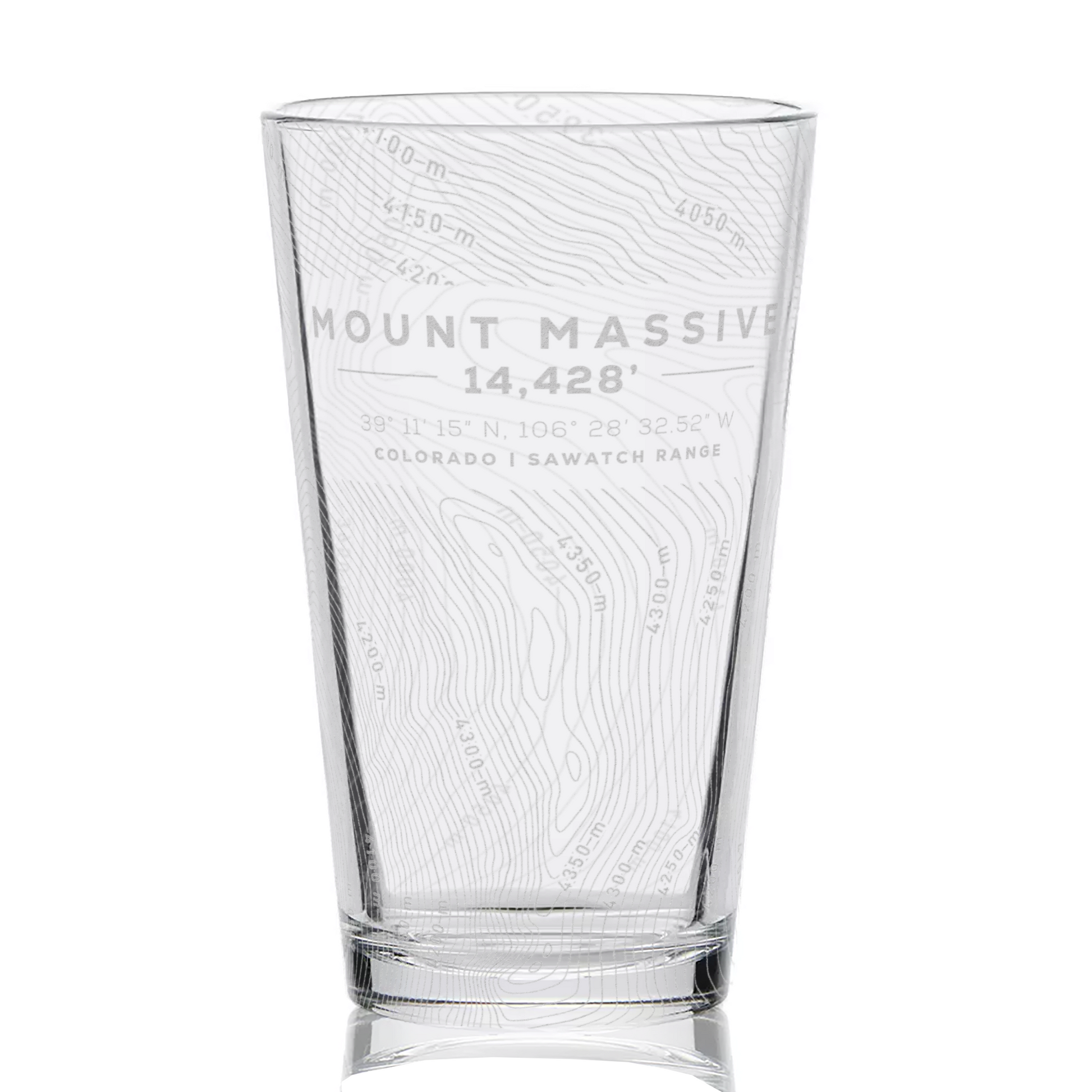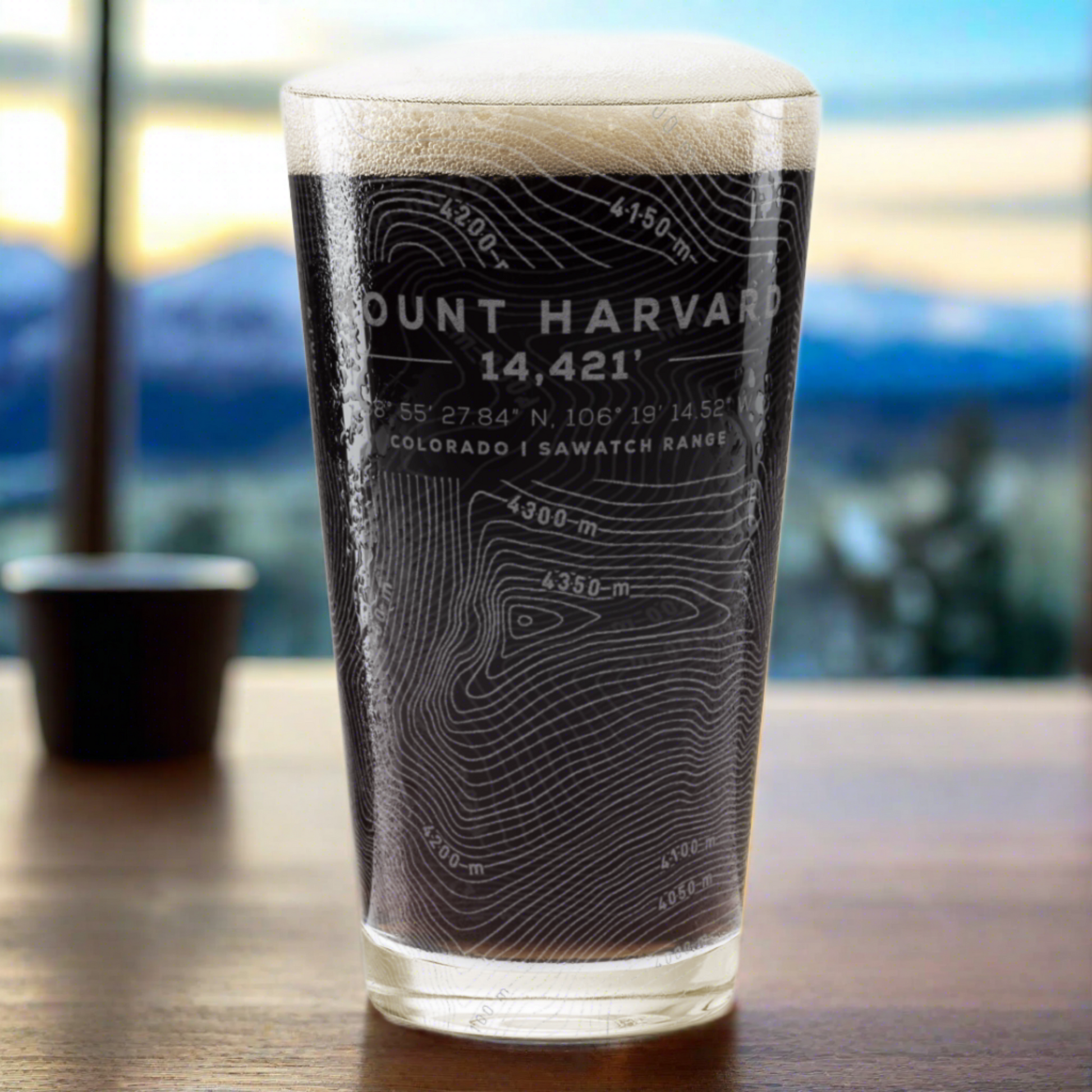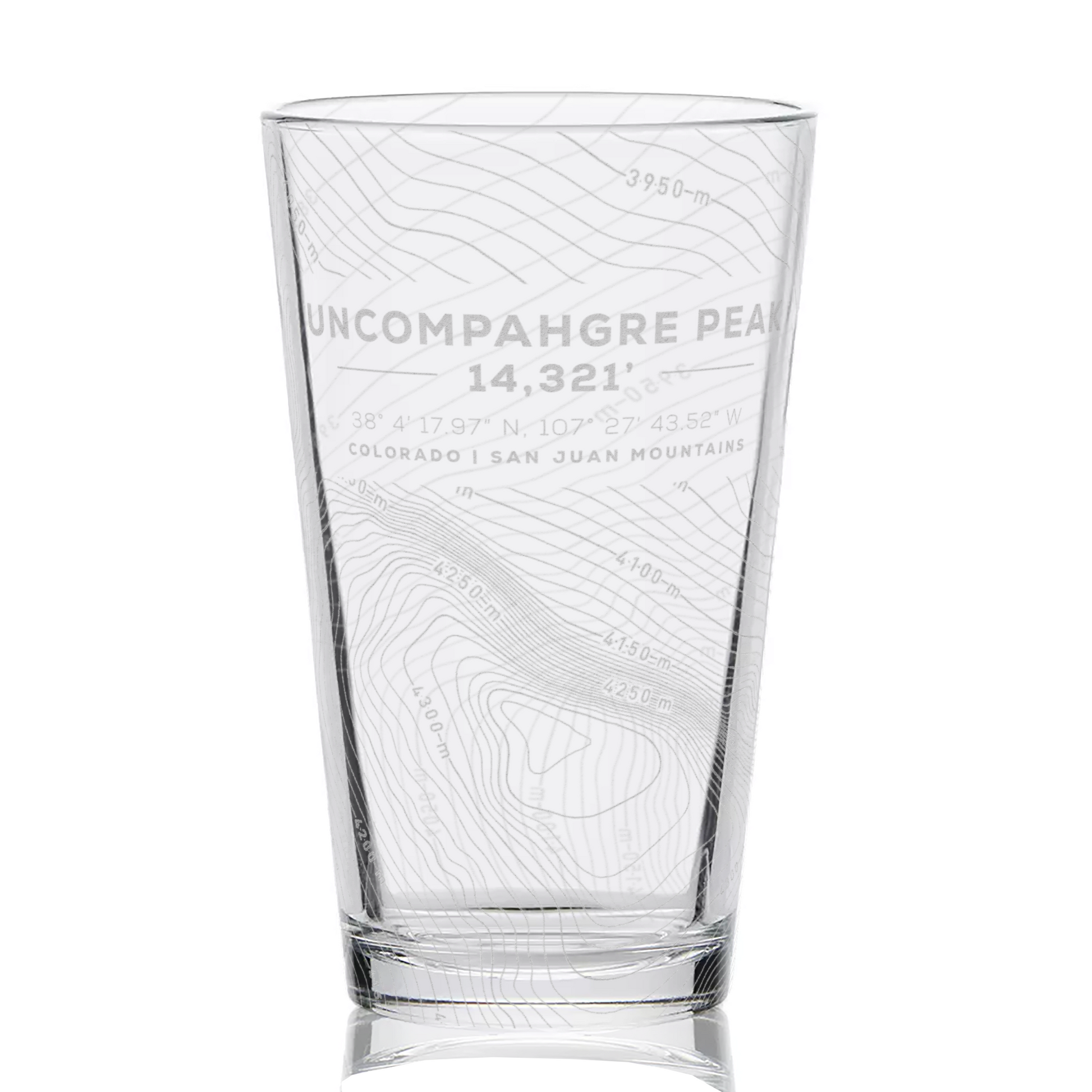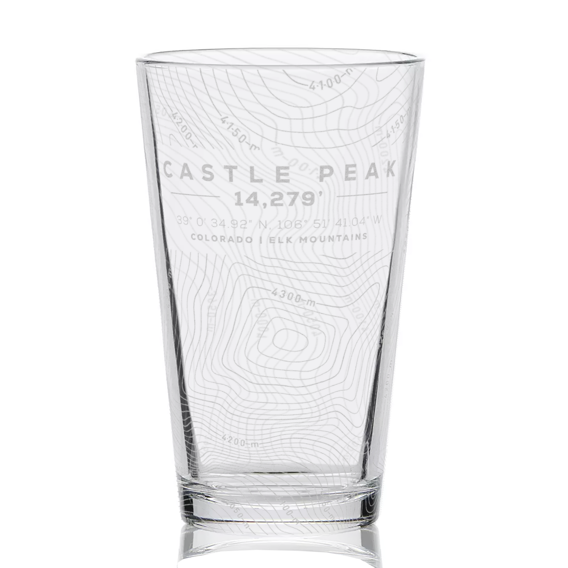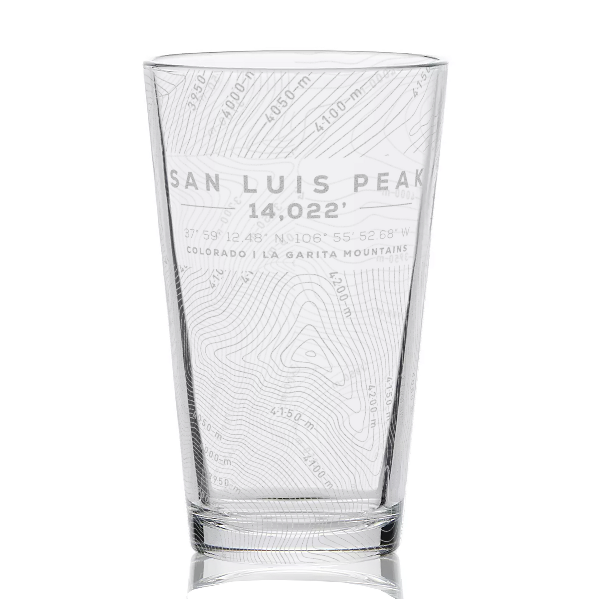Introducing our Colorado 14ers Pint Glass Collection , celebrating the topographic majesty of the Rocky Mountains in all their towering glory. Each glass in this meticulously crafted set pays homage to one of Colorado's iconic 14,000-foot peaks.