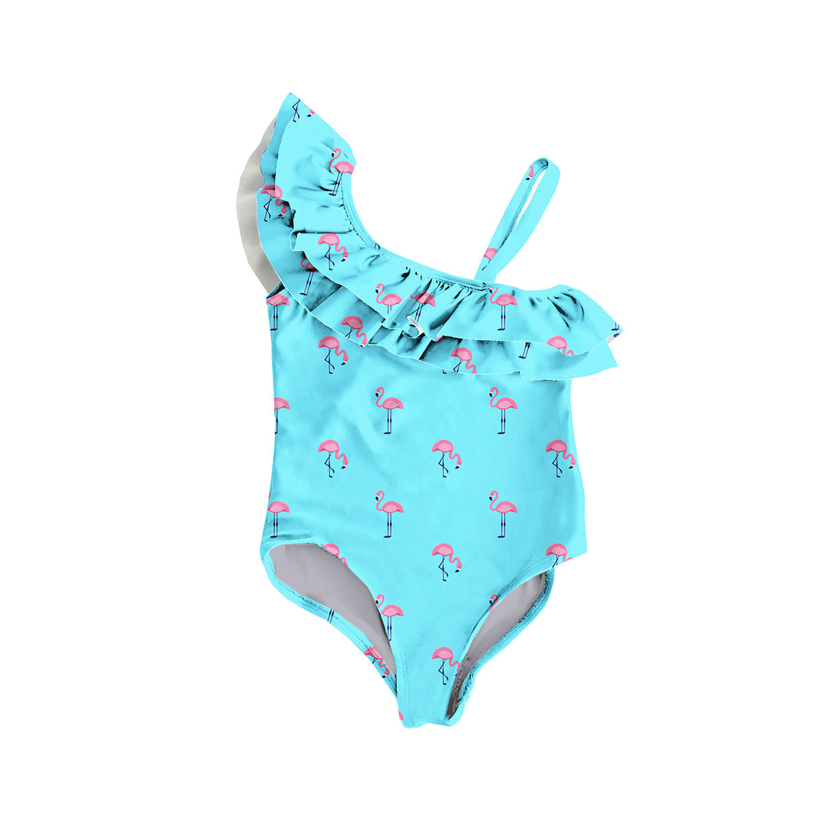 The swimsuit's polyester fabric blend offers a soft feel, while the ruffles and 1-shoulder design create a fashionable look. Let your little one stand out with amazing fun prints this summer.