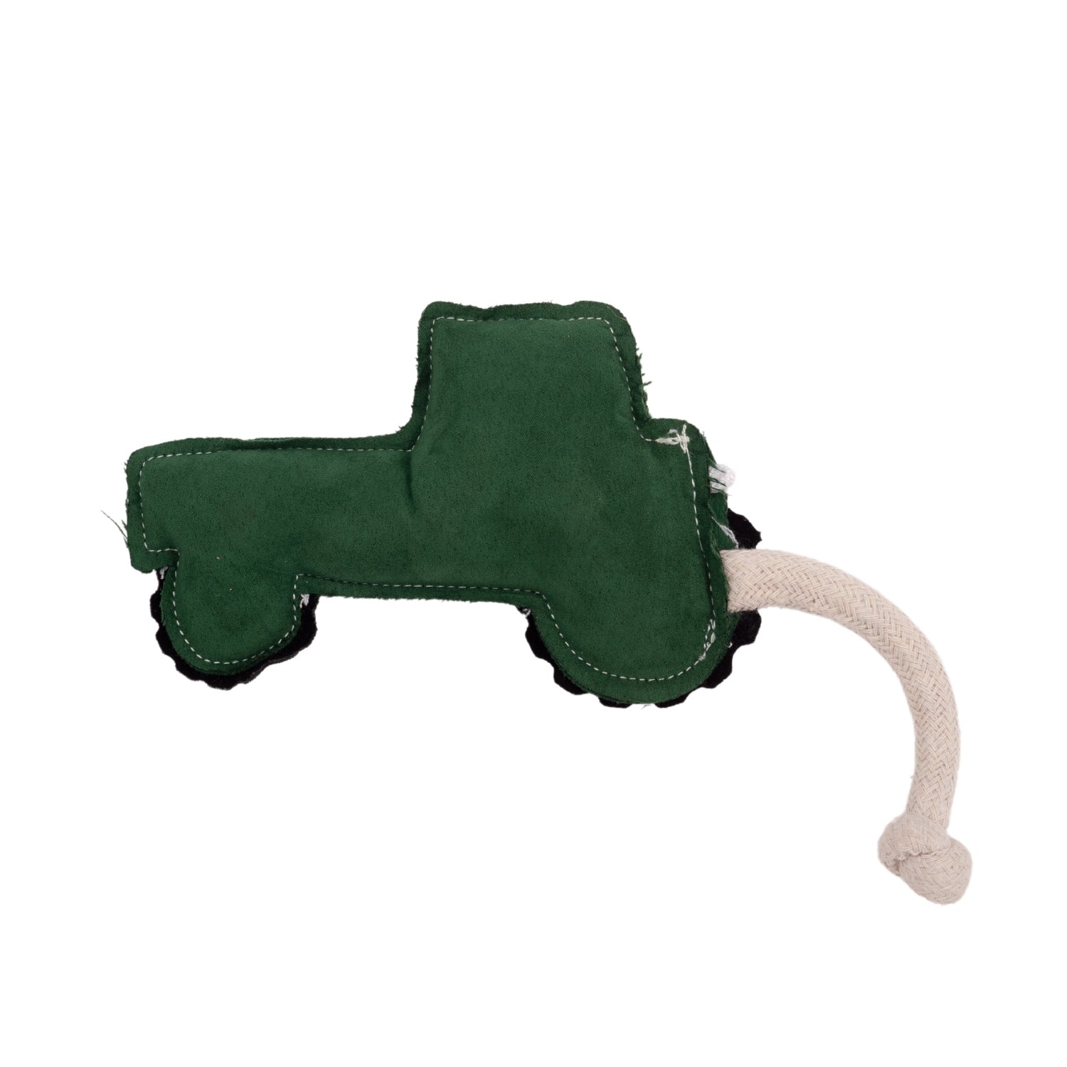 Introducing the Country Living Green Tractor Dog Toy - a perfect blend of fun, durability, and safety for your beloved pet. Crafted from premium vegan leather (made from recycled water bottles), this toy is designed to withstand the playful antics of dogs of all sizes. The charming green tractor design will capture your dog's interest, making it an excellent addition to their toy collection.