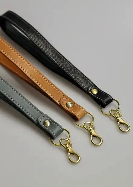 The Key-leash is ideal keeping hands free and make finding keys in an endlessly deep tote a snap. Made of two layers of full grain leather and luminescent brass keyring and swivel snap. These key chains are 16" making them easy to slip over a bare or gloved hand. Made by hand in the heart of America.