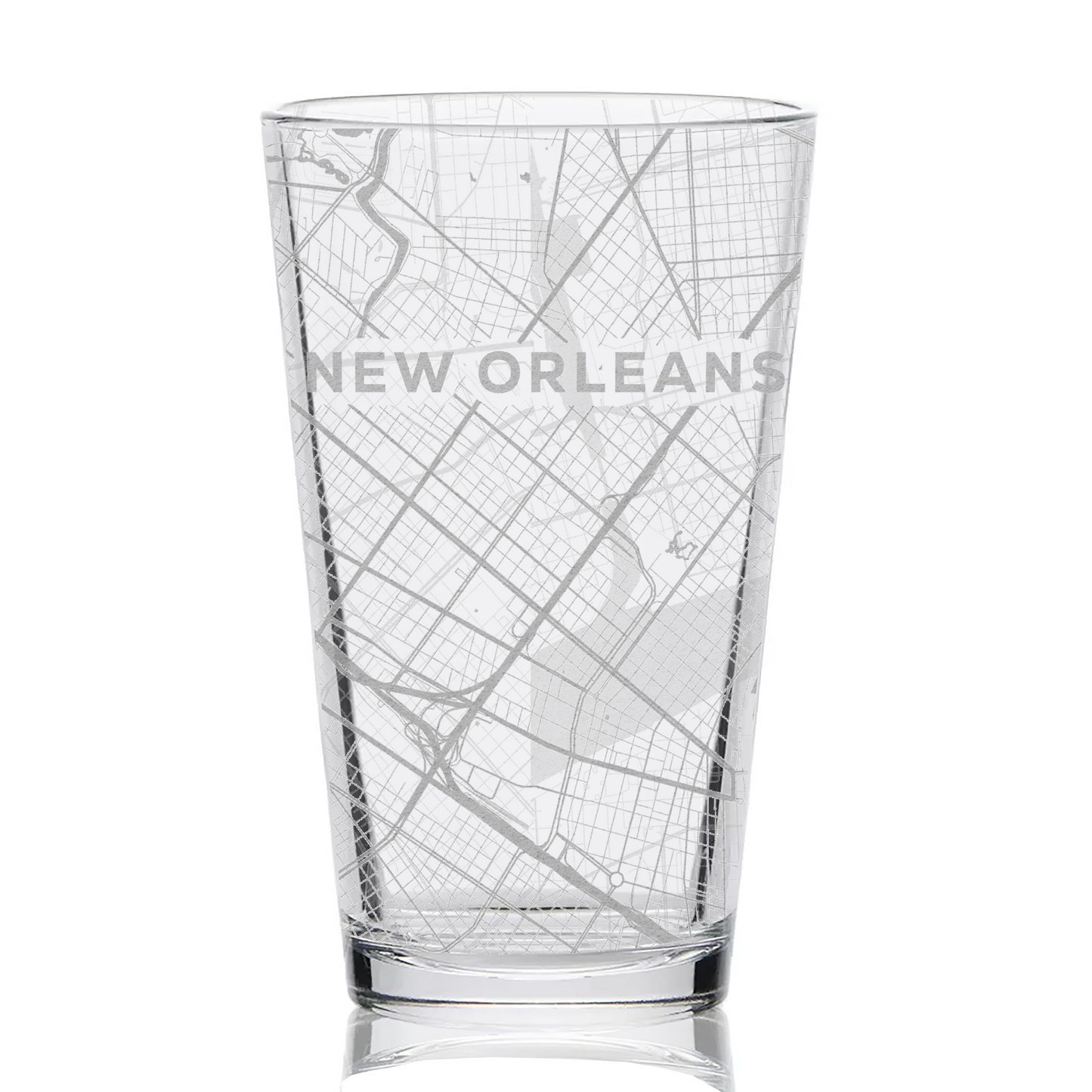 Embrace the unique charm of New Orleans, Louisiana, with our New Orleans Street Map Pint Glass. This 16oz glass showcases an intricately engraved map of the city, allowing you to navigate its historic streets and relive memorable moments with every sip. Whether you're a resident or have fond memories of New Orleans, this pint glass is a unique and nostalgic way to raise a toast to the city's rich culture, cuisine, and music with every drink.