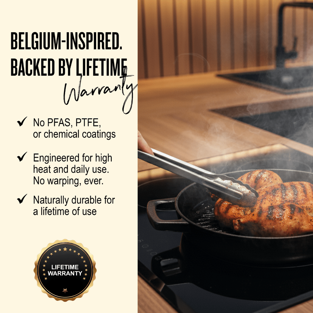 - Pure Cast Iron. Zero Toxins.: No PFAS, PTFE, lead, or chemical coatings—just clean, safe cooking at high heat.