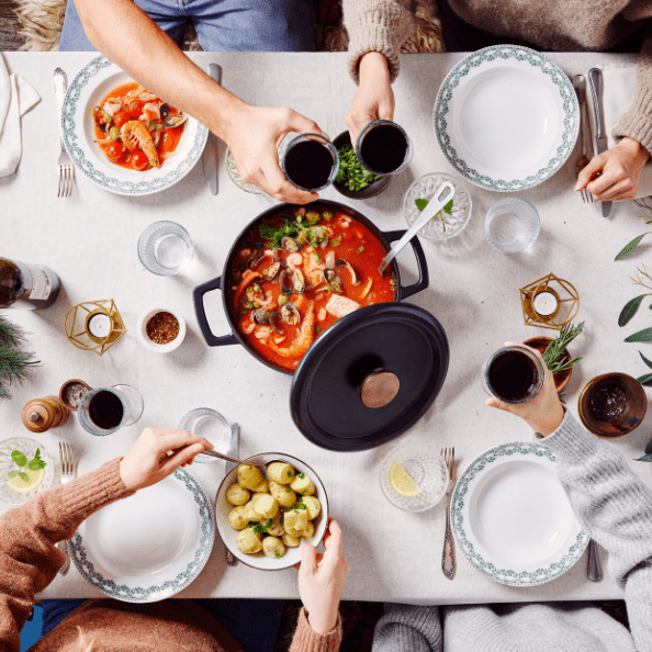 Cast iron holds steady heat so stews, chili, and roasts cook evenly from edge to center. -
