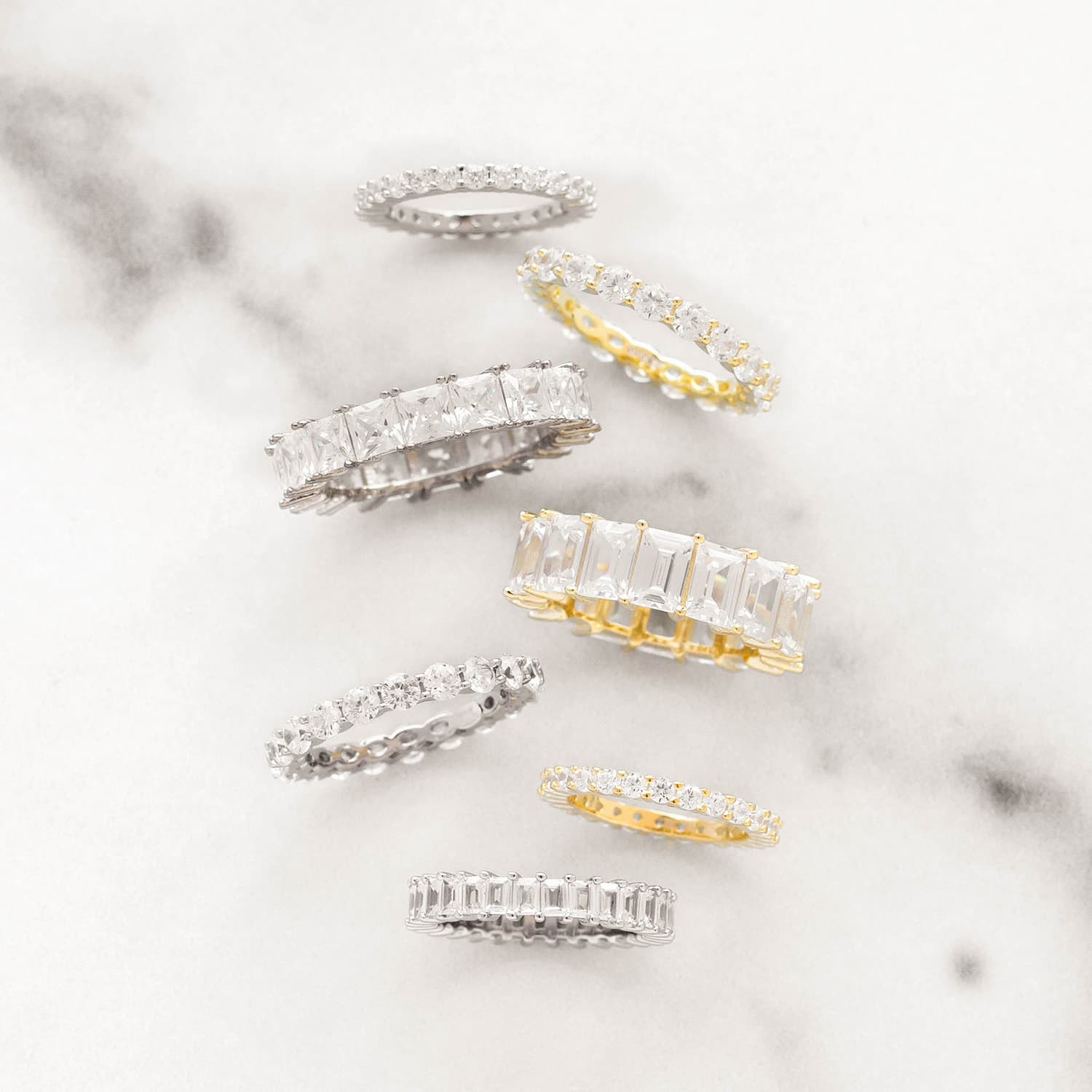 Make a lasting impression in Adina Eden's eternity band, crafted with pristinely cut CZ stones in three metallic finishes. Add this must-have ring to your everyday stack for a glamorous, yet timeless effect.