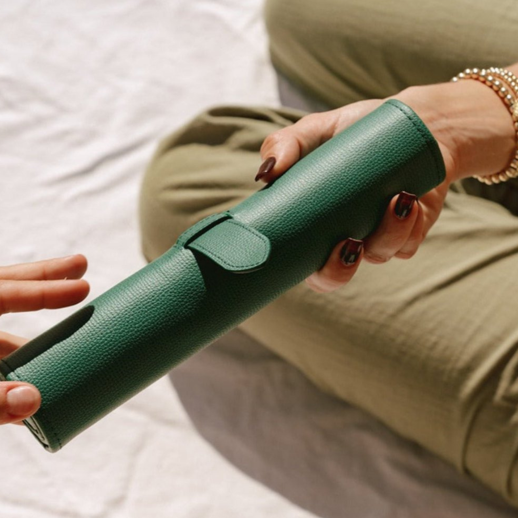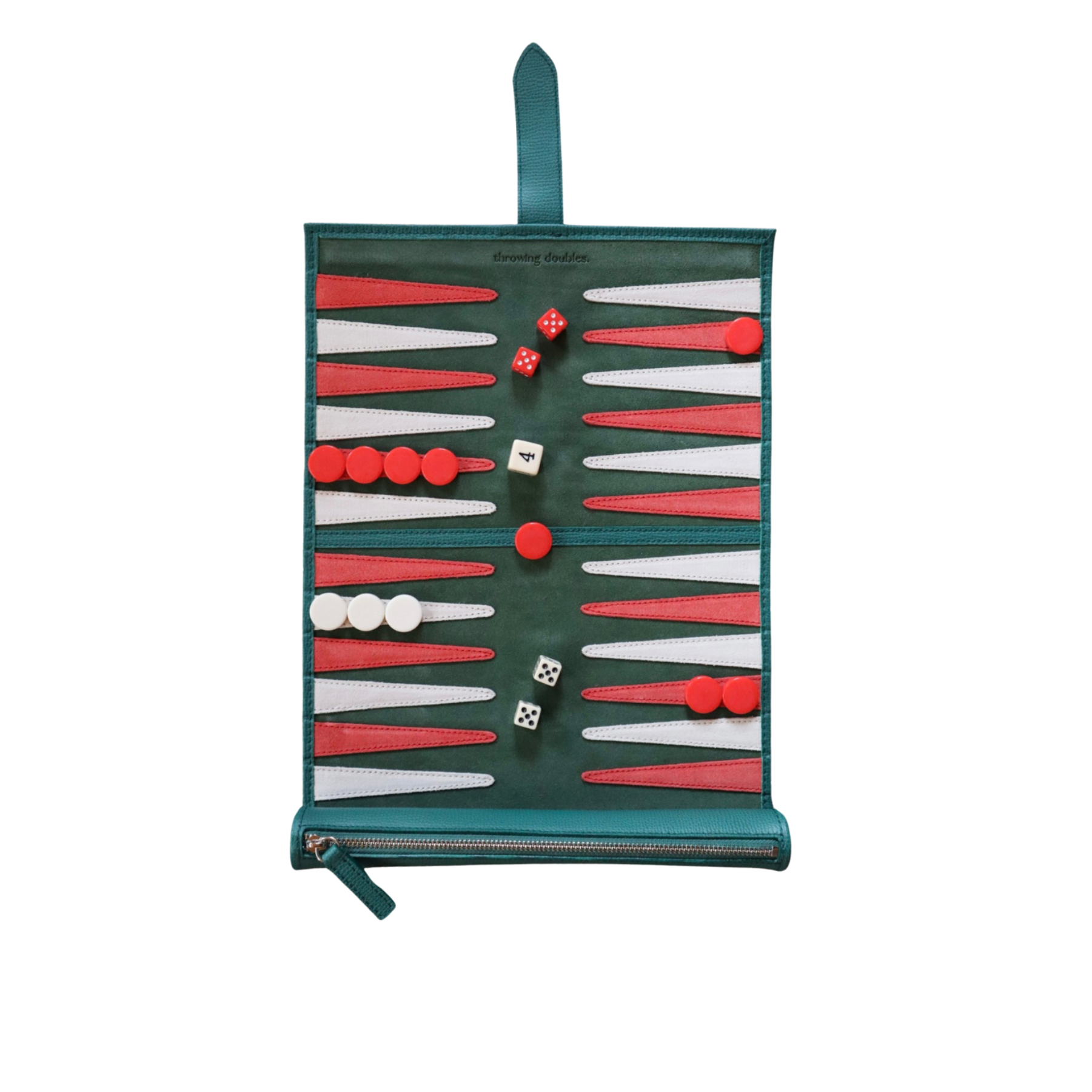 Handmade in Los Angeles, this luxe green and red travel backgammon set is a perfect addition to any globetrotter’s hand luggage. The set features a leather base with a green, white and red suede playing field. Ideal for the traveller who can’t resist a game on the go.