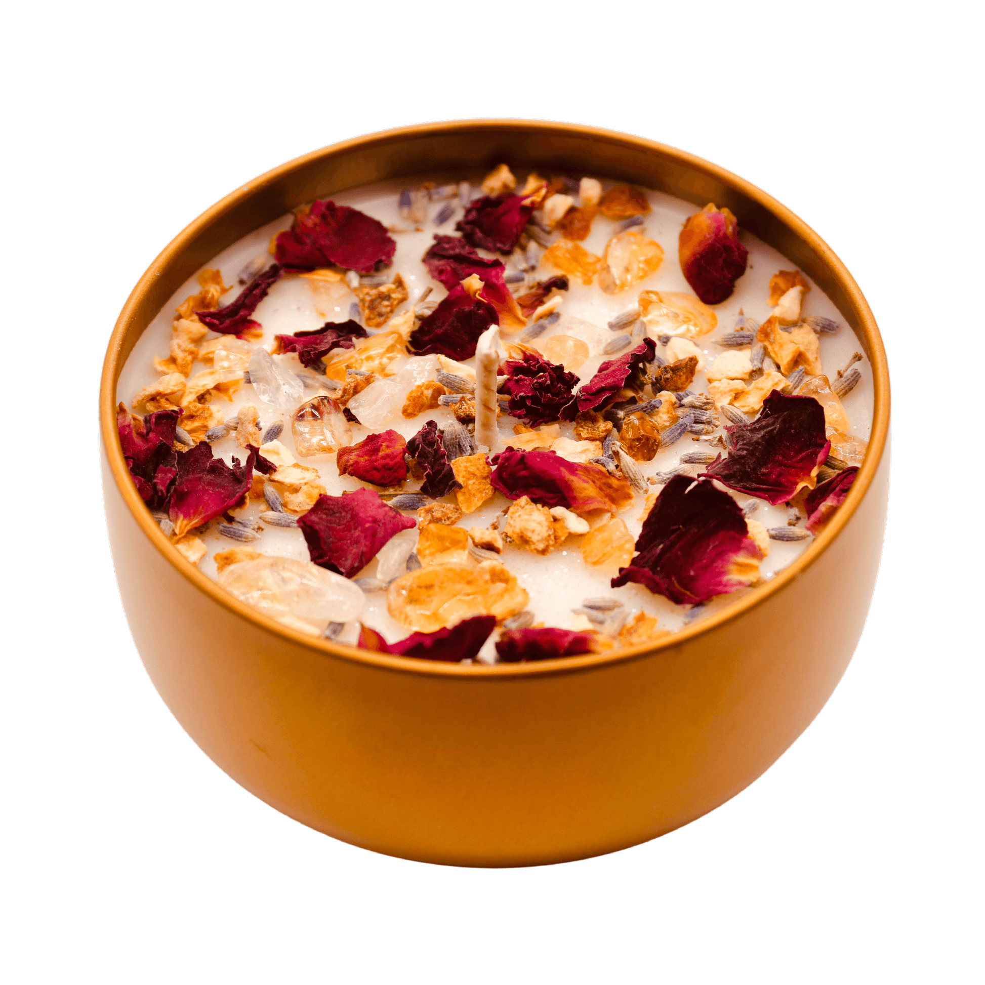 This beautifully crafted intention candle combines soothing scents with embedded crystals designed to attract wealth, success, and good fortune. Perfect for meditation, manifestation rituals, or simply setting a positive tone in your space.